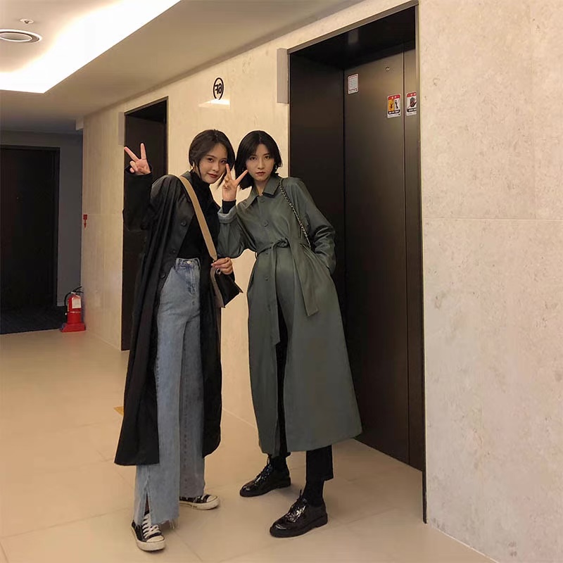 Out with my bestie leather coat LJ104